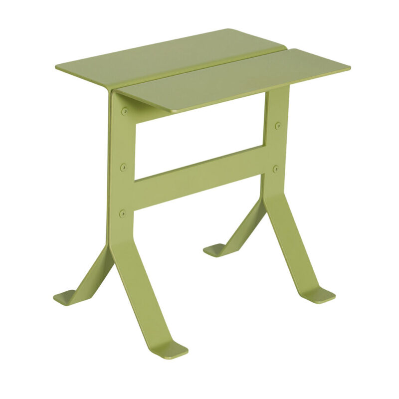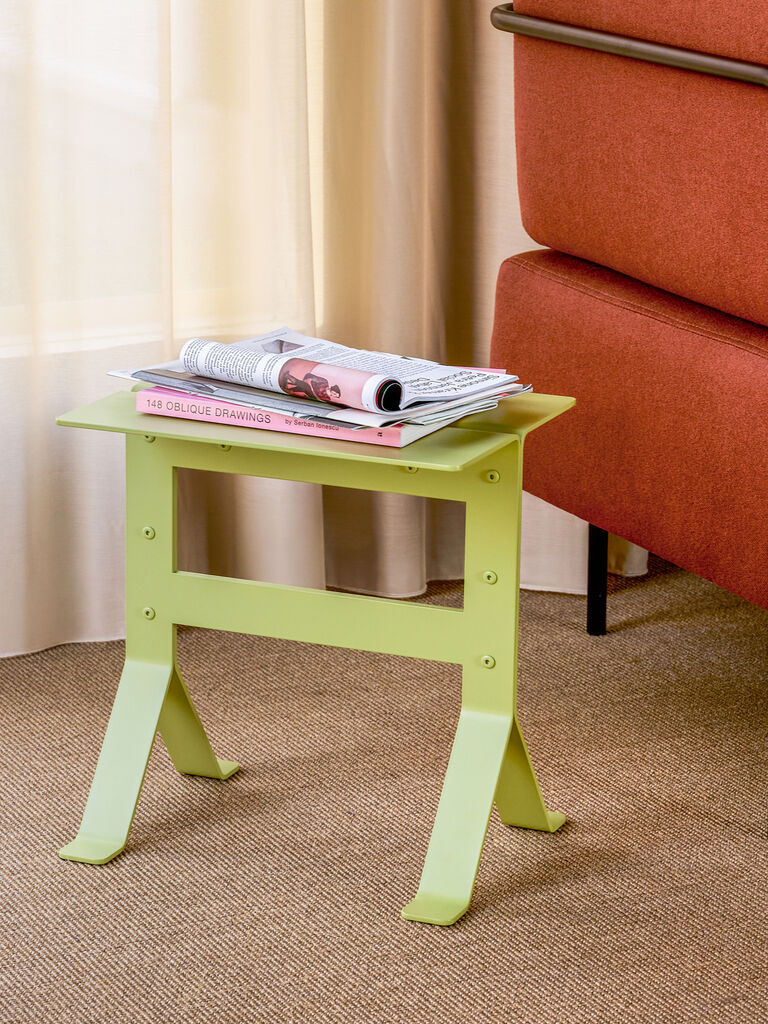 Fold Sidebord, et charmerende møbel til dit opholdsrum, der minder om et stykke foldet papir i udtrykket. Fremstillet af pulverlakeret stål i en lys grøn farve, sikrer dette bord holdbarhed indpakket i et fængende design. Tilgængelig i tre forskellige varianter, taler hvert produkt til en nostalgi, næsten som en erindring om skoletidens kunst og håndværk. Dets robuste, meget tunge konstruktion gør det til en pålidelig ledsager ved din yndlingslænestol, hvor den kan holde din aftente og din seneste læsning.