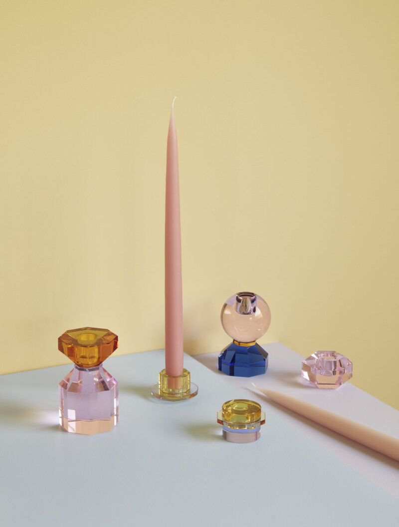 Forside / Boligtilbehør / Lysestager & Lanterner / Lysestager / Kiosk Lysestager Gul/Lilla (sæt af 2)