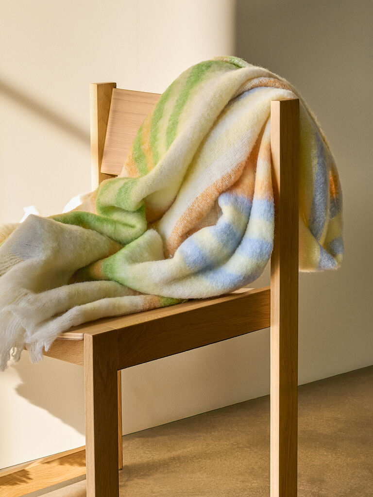 Omslut dig selv i en stråle af solskin med vores Loom Plaid, som præsenterer et stribet grafisk mønster i lyse farver, der fremkalder en sommerlig følelse året rundt. Dette dejlige tæppe er omhyggeligt håndlavet fra en stærk sammensætning af materialer, herunder akryl, nylon og uld, hvilket sikrer både komfort og holdbarhed. Det er også certificeret efter OEKO-TEX® STANDARD 100, hvilket garanterer, at det opfylder de højeste sikkerhedsstandarder. Perfekt til at tilføje et varmt, muntert præg på dit foretrukne hyggelige hjørne indendørs.