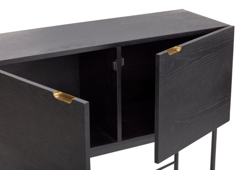 Kommoden er lavet af FSC-certificeret asketræ og messing. Det sorte træ skaber et sofistikeret look, og de gyldne detaljer giver kommoden et elegant præg. Du kan anbring kommoden i soveværelset, entreen, stuen eller ethvert andet rum i dit hjem.