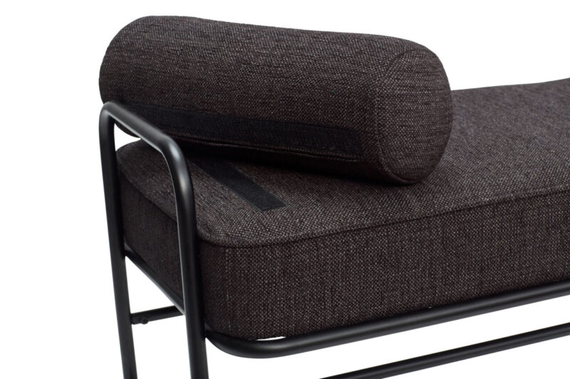Bænken er lavet af sort metal og sort stof. Bænkens rene design komplimenteres af stoffets blødhed og skaber et twist af hygge. Anbring eksempelvis bænken i din entré, stue eller soveværelset.