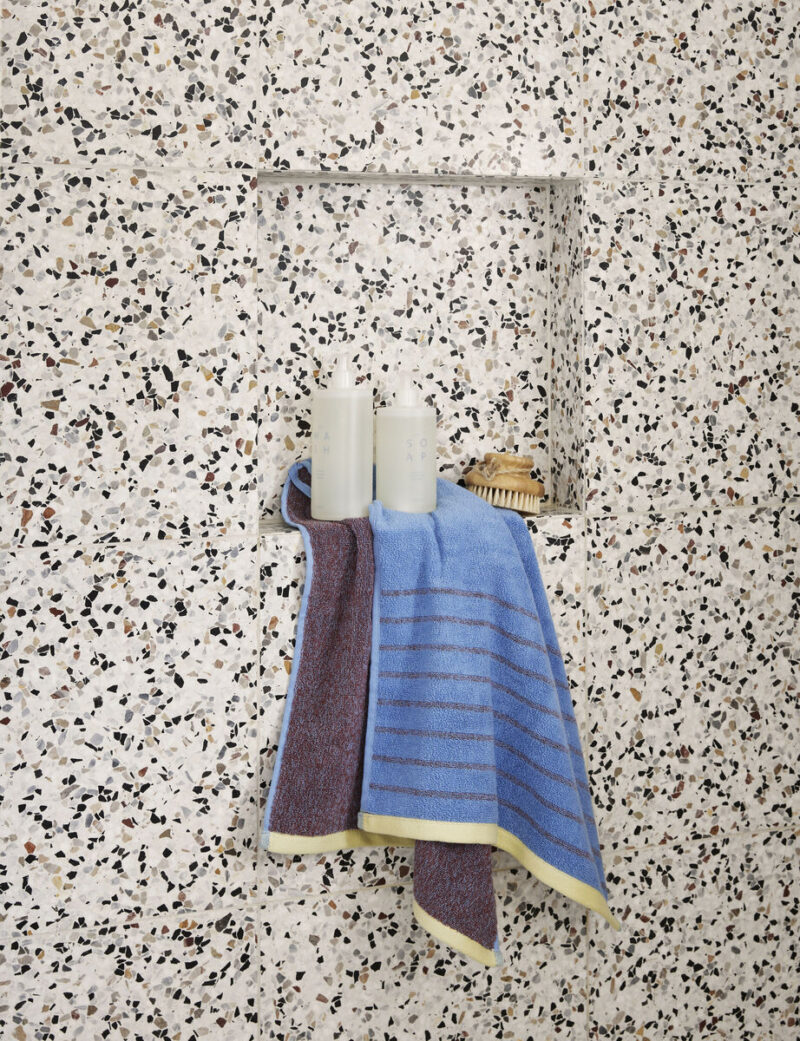 Badeværelset. Tit forsømt når det kommer til styling. Dit badeværelse vil elske vores nye, bløde og farverige OEKO-TEX® STANDARD 100® certificerede håndklæder. Der er ikke noget bedre end at slå et blødt håndklæde omkring sig efter et dejligt langt bad. Denne skønhed har en fin lilla og blåmeleret farve, som både du og dit badeværelse får glæde af.