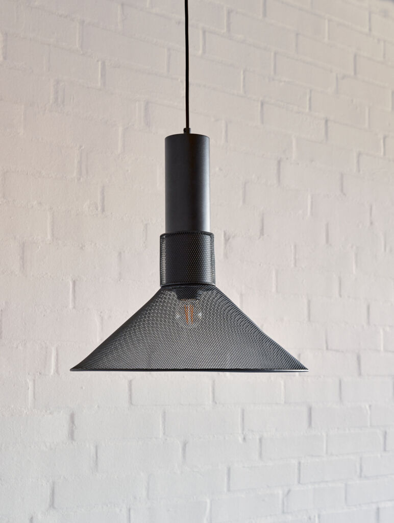 Vi knuselsker denne store, sorte trådnetslampe. Når loftslampen er tændt, skaber trådnettet det fineste mønster på loft og vægge, hvilket skaber en stemning af elegance og charme. Det grafiske formsprog kombineret med det bløde lys er sådan en fin sammensætning. Lampen er perfekt til din stue, entre eller soveværelse – er et lysende klart valg.