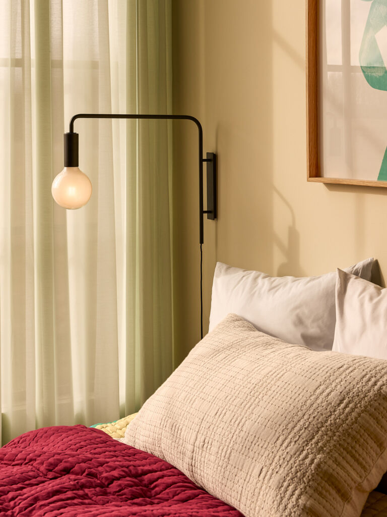 Oplys dit yndlingshjørne med Serendipity Væglampe, en klassisk væglampe, der forener funktion og stil. Fremstillet af robust metal med et chic sort finish, har den et skarpt minimalistisk design, der smelter ubesværet ind i enhver indretning. Den store pære udsender et varmt, indbydende skær, der er perfekt til at du kan læse god bog eller blot lyse din hyggekrog op. Forvandl dit rum med dette stilfulde, men praktiske, nye element i dit hjem.