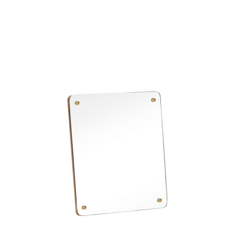 Her er et lille rektangulært bordspejl, som er dit næste badeværelse- eller soveværelse must-have. Bordspejlet har en fin kombination af træ og messingfarvet detaljer, som ser godt ud og passer til alle slags indretninger. Spejlet er lavet af FSC®-certificeret træ, så når du lige skkal tjekke dig selv ud, så kan du gøre det med god samvittighed.