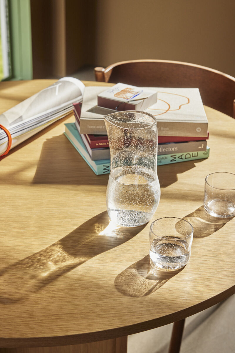 Oplev den betagende charme ved Sui Kanden, et mesterværk fremstillet af glas med en asymmetrisk og organisk form, der fanger hjertet. De delikate luftbobler skaber en hypnotiserende tekstur, hvor lyset gennem dens figur kaster smukke skygger i sollyset, og tilføjer et strejf af magi til dine indendørs rum. Uanset om den bruges til at servere forfriskende drikkevarer eller blot til at dekorere din hylde, så er Sui Kanden en smuk visuel tilføjelse til dit hjem.