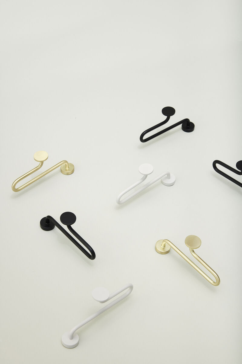 Elegant og grafisk på samme tid. Den messingfarvede Swing hook vil tilføje et moderne pift til en hver væg i dit hjem. Hvad enten du placerer krogen på en væg i køkkenet, i badeværelset eller dit soveværelse, skal du kun forholde dig til, hvilken farve, du vil gå med. Swing hook fås nemlig i tre farver: sort, hvid eller messingfarve. Om du svinger mest til den ene eller anden farve, det må du bestemme – du kan også mikse og matche. Hæng tre eller fem på en række, det giver sådan et flot visuelt udtryk.