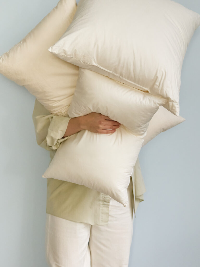 Alle unsere Kissenbezüge werden mit Fossflakes® Füllung geliefert. Fossflakes® wird in Dänemark hergestellt und besteht aus einer Kombination aus feinen Flocken und weichen Polyesterfasern. Sie sorgt für ein angenehmes Komfortgefühl und hilft dem Kissen, seine Form langfristig zu behalten.