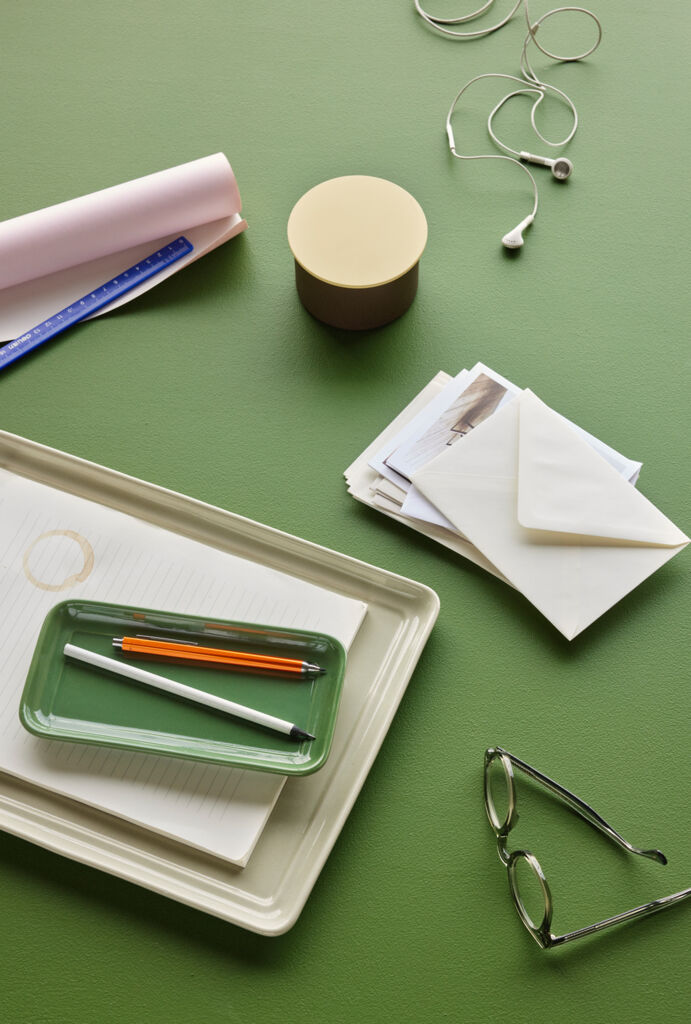 Gegenstände, die Funktion und Schönheit des Designs vereinen, sind die besten! Und das große Keramiktablett Amare ist ein schönes Beispiel dafür! Perfekt als Büroablage: Für Stifte und Papier oder andere Schreibwaren – oder als Serviertablett für offene Sandwiches, auch bekannt als Smørrebrød, oder Sushi. Die tiefe Sandfarbe, kombiniert mit einem satten Grün, wird jeden Raum und jede Stimmung aufpeppen. Lebensmittelgeeignet und spülmaschinenfest.