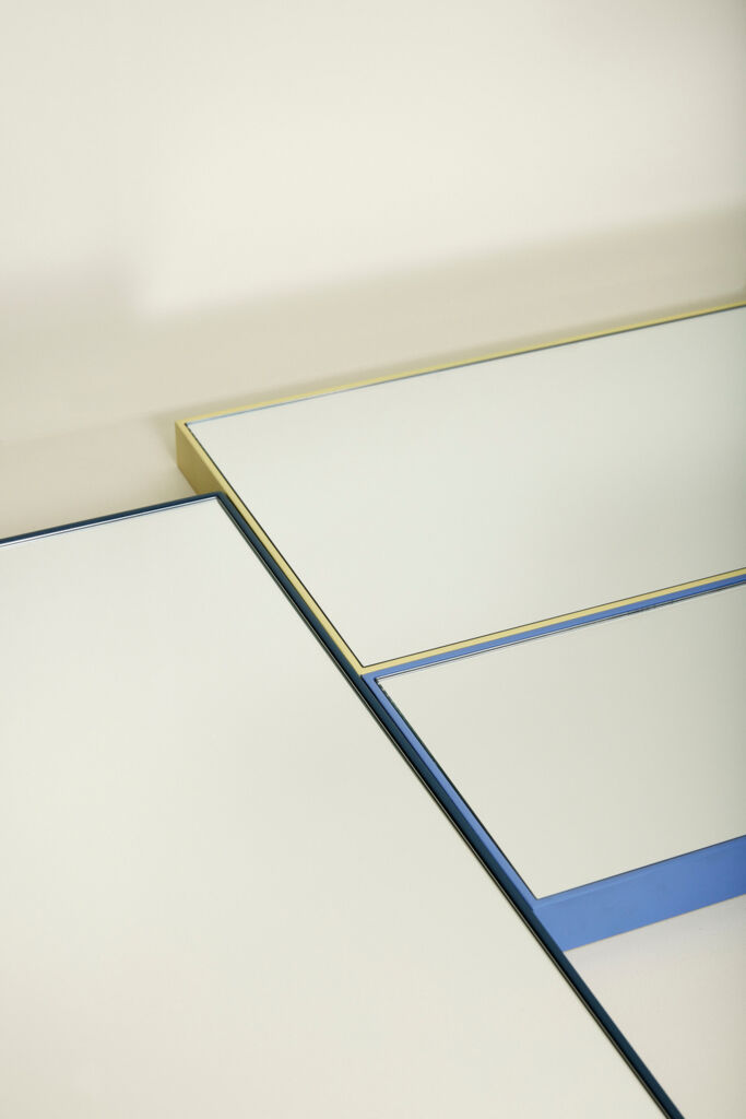Die Spiegel der Serie Shine, die in vier Größen erhältlich sind, kommen sowohl einzeln als auch als Gruppe perfekt zur Geltung. Dieser kleine, blau gerahmte Spiegel eignet sich ideal als dekoratives Element in einem Regal oder als unaufdringlicher, aber stilvoller Blickfang. Alle Shine-Spiegel können sowohl senkrecht als auch waagerecht aufgehängt werden.