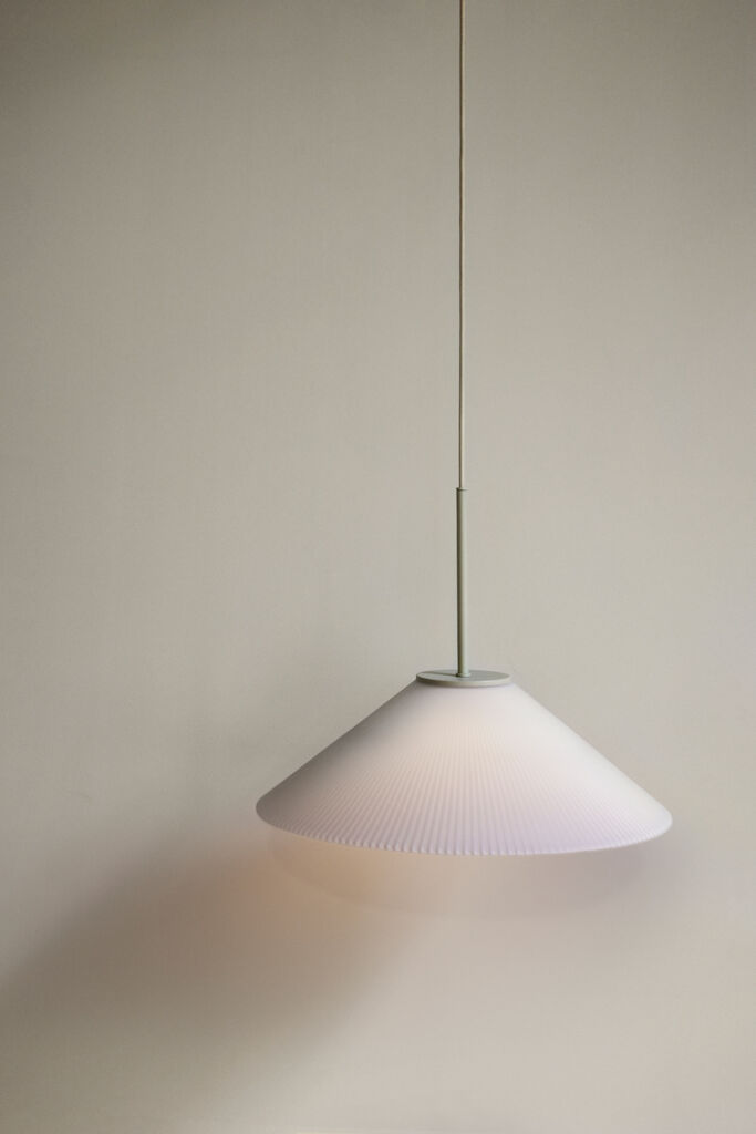 Manchmal dauert es ein wenig, bis man sich an kräftige Farben gewöhnt: Fangen Sie doch langsam an – mit einer klassischen Pendelleuchte mit kleinem, aber wirkungsvollem Twist. Der opalfarbene, geriffelte Glasschirm in Kombination mit dem beigen Stoffkabel ist die perfekte Kombination: nicht zu wenig und nicht zu viel.