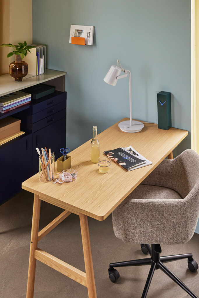 Les bureaux sont devenus aussi indispensables que les chaises et les tables dans une maison. Ce bureau en bois est élégant et chaleureux, minimaliste et pratique. Fabriqué à partir de placage de chêne certifié FSC®, c’est le bureau parfait pour télé-travailler en alliant efficacité et esthétisme.