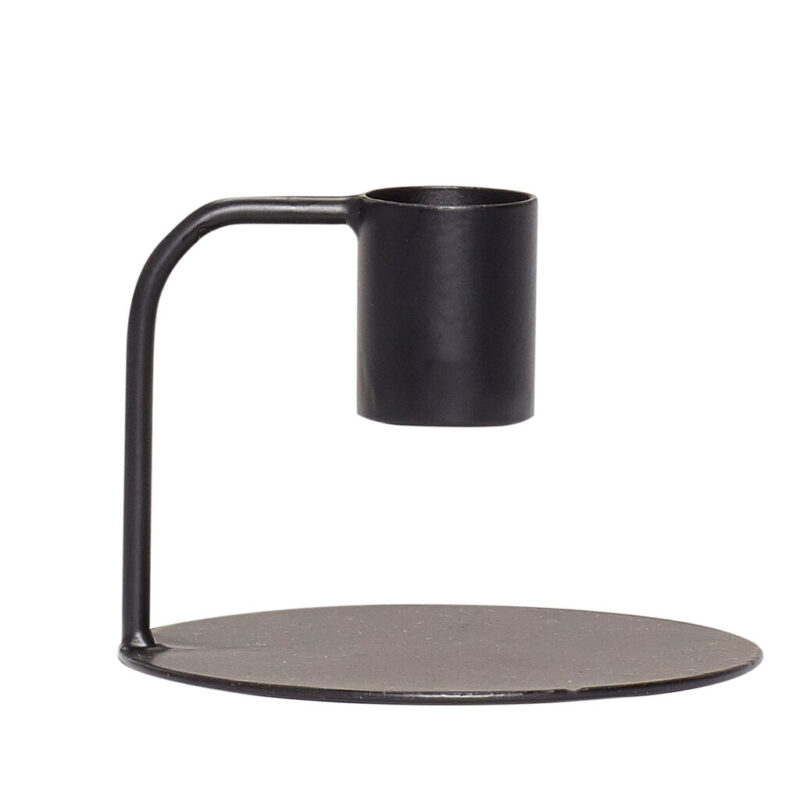 Bougeoir noir en métal. Sa forme élégante crée un look moderne et sa couleur noire s’harmonise avec toutes les bougies, qu’elles soient blanches ou violettes.