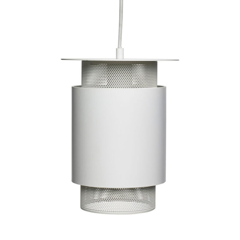 Cette suspension est en fer et en métal. Elle possède une forme cylindrique avec une structure ajourée, ce qui permet d’avoir une lumière confortable et cosy. Le design ainsi que la couleur blanche créeront une atmosphère élégante. Placez-la dans votre salle à manger, le salon, ou dans la chambre.