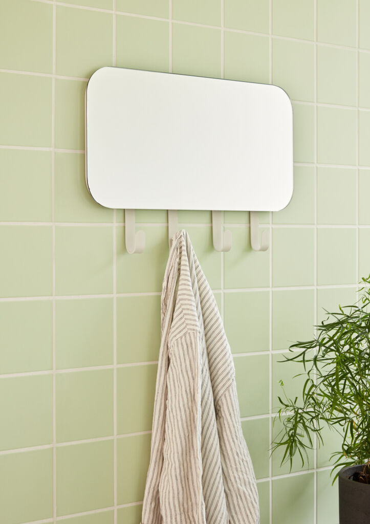 Le porte manteau a quatre crochets et un miroir. Vous pouvez le placer dans la salle de bain, dans l’entrée et dans d’autres pièces de votre maison. Pour un seul accessoire, il remplit de multiples fonctions.