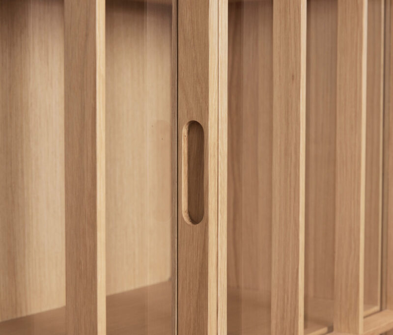 Ranger avec élégance, c’est notre but. Cette armoire contemporaine à étagères en bois certifié FSC® est très belle. Inspirée de la technique japonaise Shoji, elle s’impose naturellement. Exposez vos plus beaux objets de famille, votre plus jolie vaisselle ou tout autre objet qui vous fait plaisir !