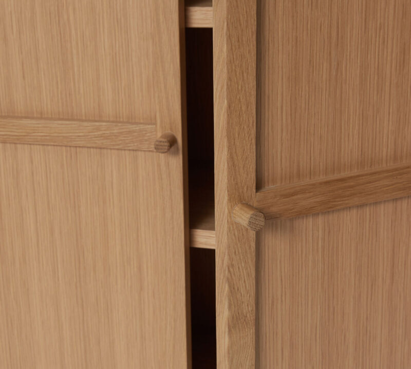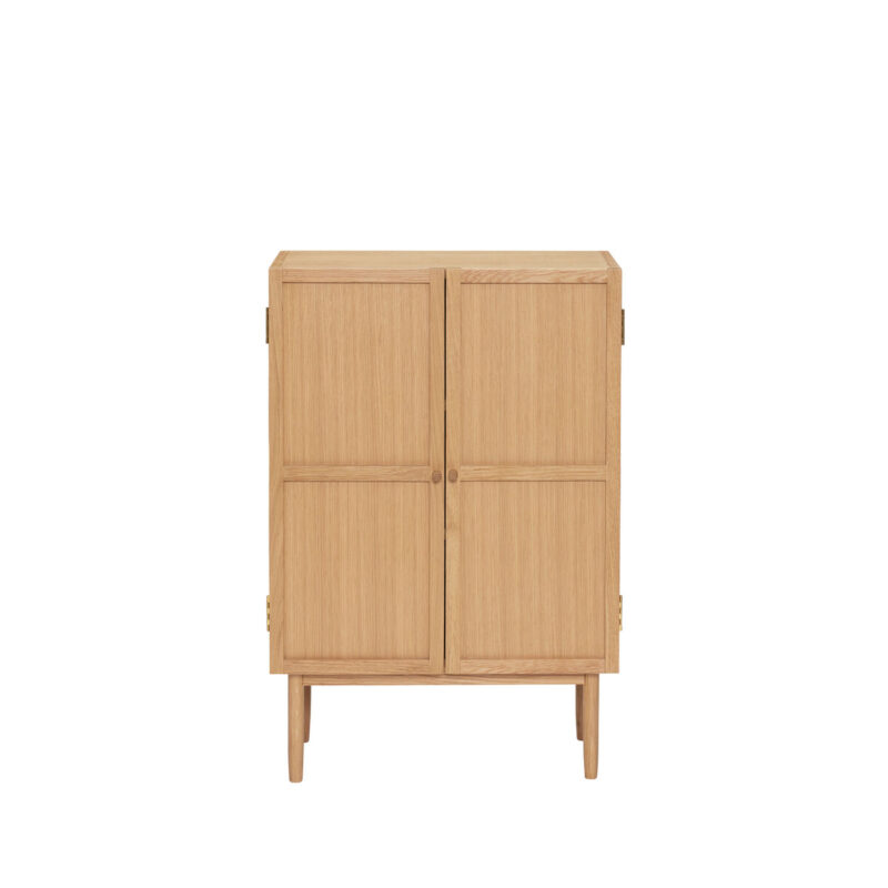 The Candour cabinet is versatile and elegant. Not only does this beautiful oak cabinet enable storage solutions to smaller spaces, but it also works well as a sofa companion. Place next to a sofa in your living area and keep track of all the knick-knack that often ends up on your coffee tables, such as the TV remote control, magazines, or papers. made from FSC®-certified oakwood. Place a beautiful vase and a lovely table lamp for the perfect ambience.