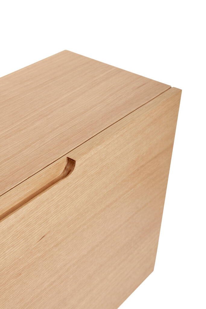 This stylish and contemporary Collect Shoe Cabinet Natural is ideal for any home or office. Crafted from FSC certified oak wood, this cabinet is designed to hold up to 16 pairs of shoes, making it the perfect storage solution. With two drawers and a simple, sleek design, it’s easy to keep your shoes organised, tidy and out of sight. Perfect for the hallway, bedroom or office.