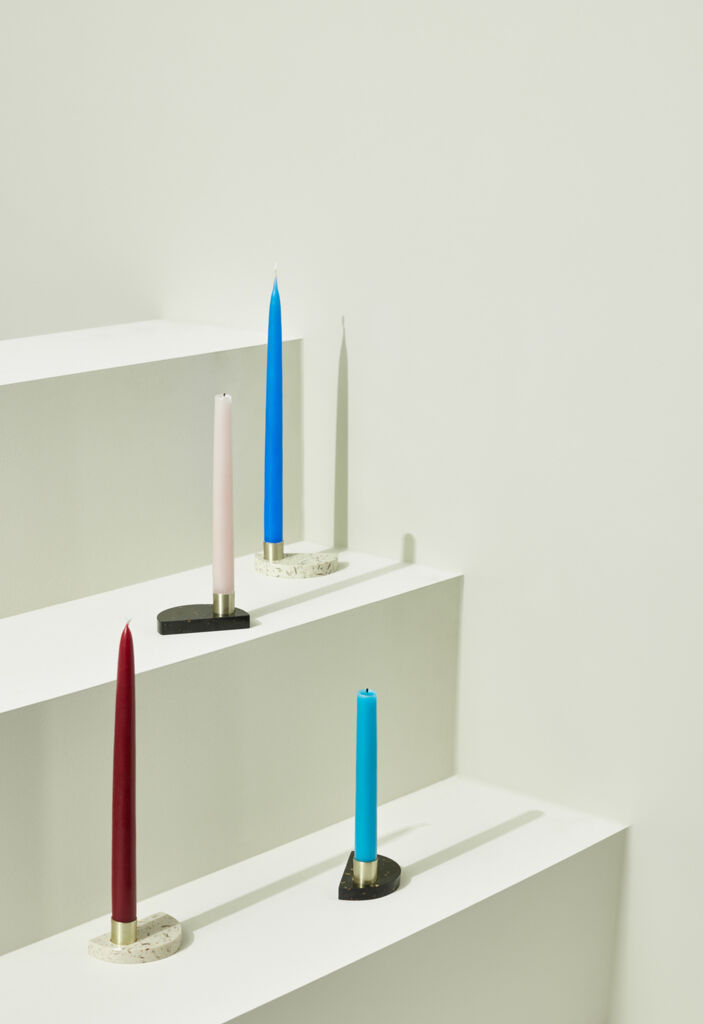 These candlesticks are made from terrazzo and come in a two piece set. The terrazzo creates a fun and playful look and the golden details give the candlesticks an elegant touch.