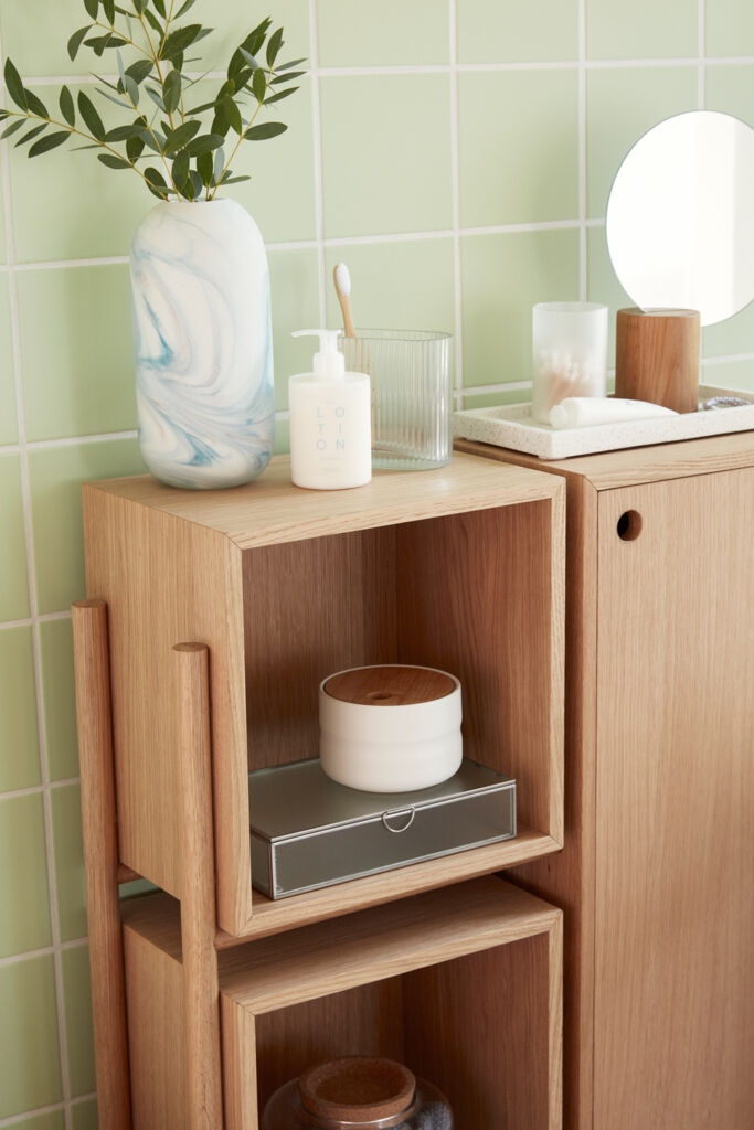 This dresser is made from FSC-certified wood and contributes with different storage options. With one large closed drawer and two open shelfs, it gives ample opportunity to display your decorations.