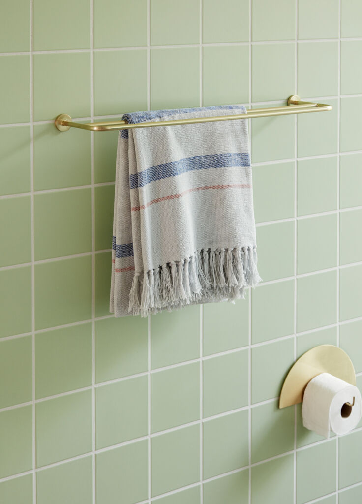 The toilet paper holder in gold coloured metal creates an elegant look in your bathroom. The golden colour creates a warm atmosphere.