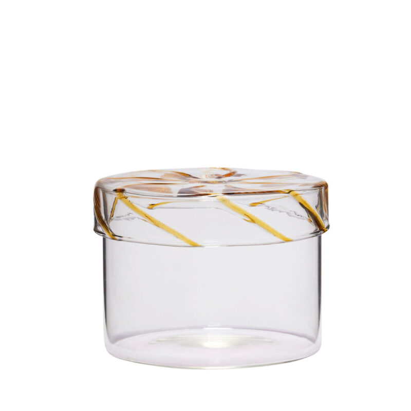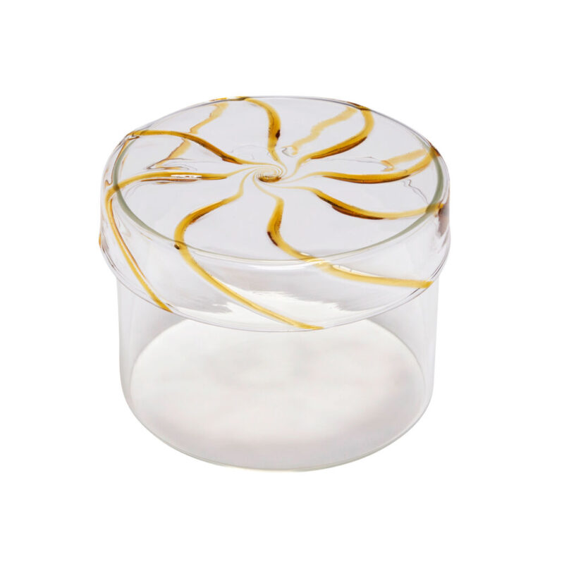 Introducing the Heir Storage Jar, the perfect addition to any home. With its stunning swirl pattern in pastel colours, this variant in vibrant yellow is sure to make a statement. Made of high-quality glass, this lightweight jar is not only stylish but also food approved, making it the ideal choice for storing your food essentials or home trinkets. Available in 3 sizes and colours, you can choose the perfect one to keep all your bits and pieces in order. Upgrade your storage game with the Heir Storage Jar.
