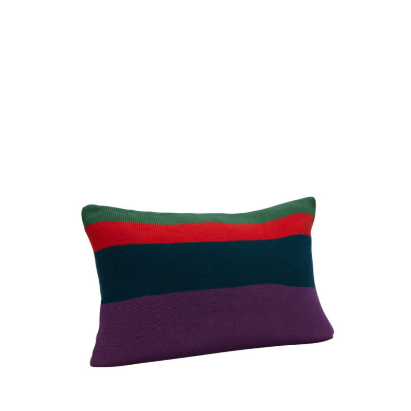 You know that we love stripes right? Stripes and cushions somehow go hand in hand. This beautifully striped computer knitted cushion from OEKO-TEX® STANDARD 100 has the most intriguing colour combo. Who would have thought red, green, and purple would look so amazing side by side? But they do. This multicoloured cushion comes with filler and has a very elegant and stylish brass coloured ziplock. Stunning!