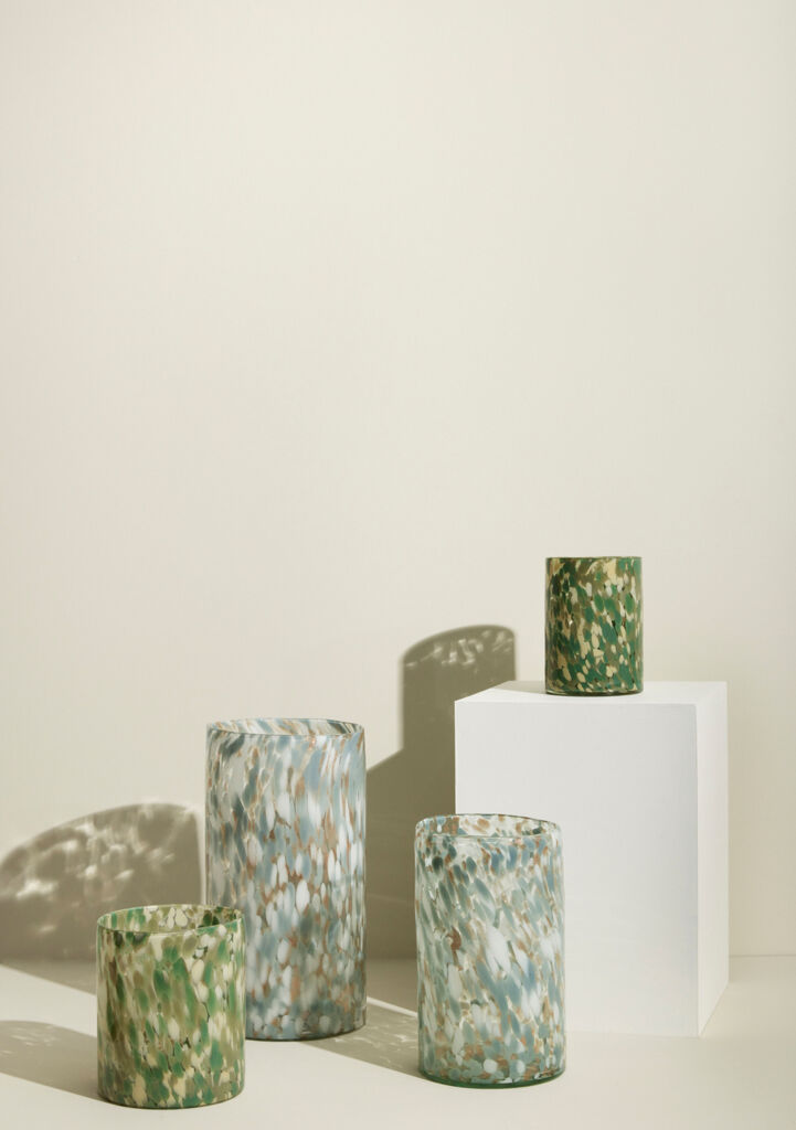 These candlelight holders are gorgeous. Perfect on their own but even more beautiful with pillar candles. Lit candles will play with the speckled pattern and make shadows dance quietly while the green hues create warmth and bring depth to the room. Absolutely stunning, don’t you think?