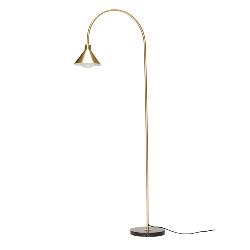 The floor lamp is made from brass, glass, marble, and metal. The floor lamp is simple and elegant. The soft shape of the lamp as well as the golden colour creates an elegant look. Place in any room in your home for a stylish detail.