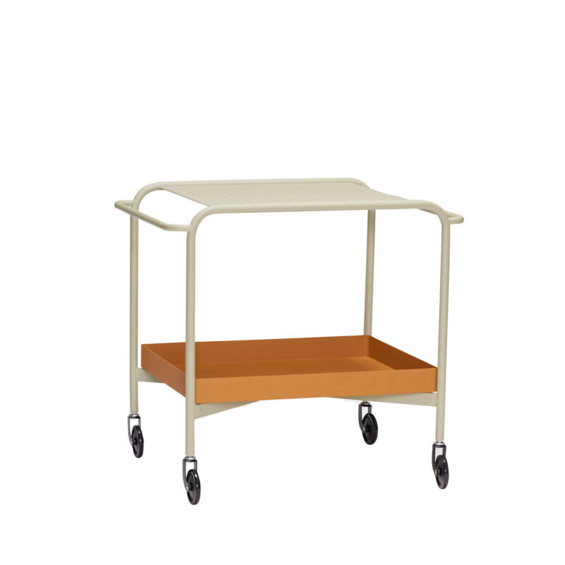 The Push Trolley is the perfect addition to your home. Crafted from durable steel, this trolley boasts a sleek sand/brown colour, adding a touch of sophistication to any room. The metal mesh on the top not only creates a light and airy look, but also allows for easy visibility and access to your items. With its mix of colours, this trolley effortlessly blends in with its surroundings, transforming into a stylish sideboard on wheels. And with its smooth gliding wheels, it’s easy to move right where you need it.