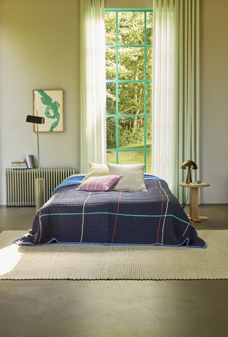 Depth, detail, and everyday luxury. The Sen Plaid in dark blue showcases exquisite hand-quilted craftsmanship, brought to life through bold colour contrasts and graphic rhythm. One of two elegant variants, it’s made from OEKO-TEX® STANDARD 100 certified cotton for a soft, secure feel that lasts. Use it to layer your bed with texture or to turn your space into a calm, cosy hideaway. A generous wrap of comfort — made to be treasured, gifted, or kept entirely to yourself.