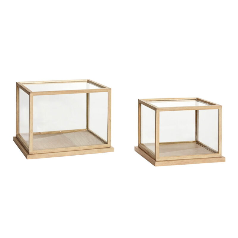 These display cases are made from glass and FSC certified oak and comes in a set of two. The displays can be placed on the floor, shelf or on your desk to show off your favourite objects or small flowerpots.