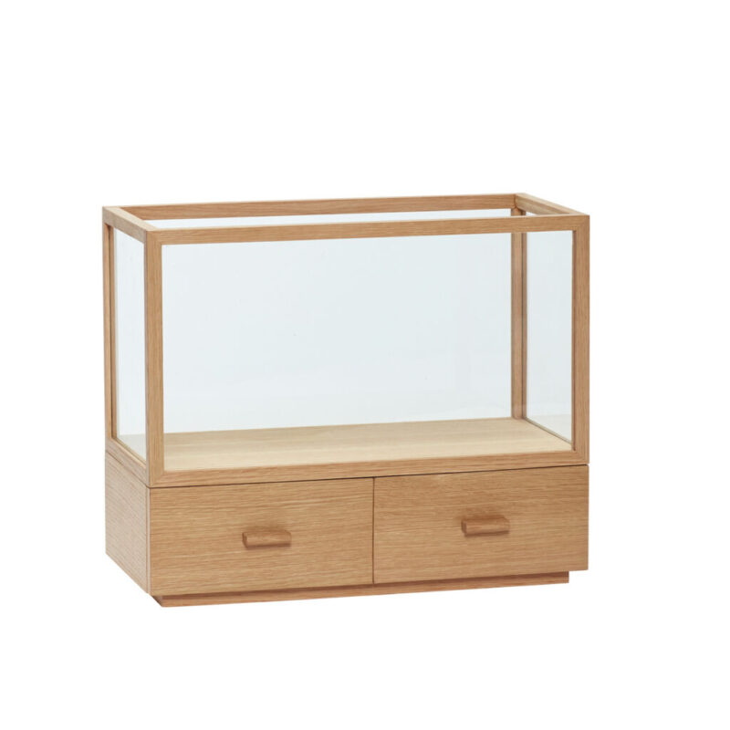 The Spectacle Display Unit Natural brings style and sophistication to any interior. Crafted with FSC certified oak wood and glass, the unit has a timeless appeal that will elevate any home. Its sleek design and warm tones create a warm and inviting atmosphere. It’s the perfect choice for any living room, bedroom, or office space. Display your favourite mementos and keepsakes in style. With its simple yet elegant design, the Spectacle Display Unit Natural will be the centrepiece of your room.