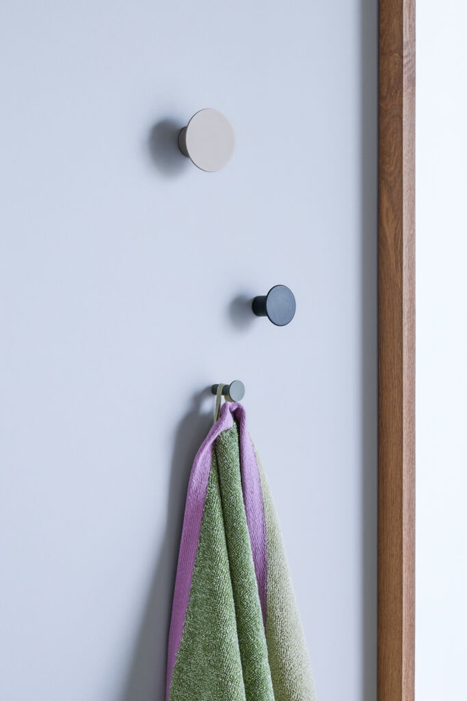 These knobs come in a set with three different colours and sizes. You can se these knobs in the entrance, bathroom, kitchen or any other room. The knobs have a minimalistic and clean design.